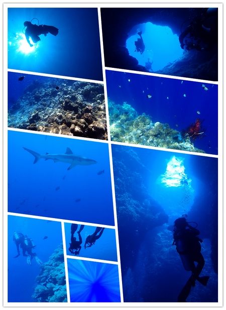 蓝角、蓝洞、大断层、德国水道、美人鱼水道、日军新水道、水母湖、牛奶湖、沉船遗迹、蝙蝠洞。