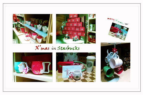 买了圣诞咖啡和系着圣诞老人的曲棍柄的奶杯,送了红绿的毛毡圣诞包包