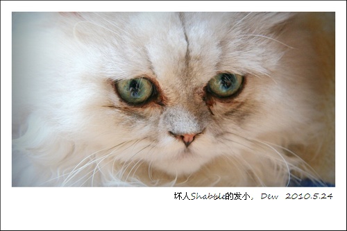 又带了猫爷去打第三次的疫苗,遇到隔壁狗爸狗妈带着狗狗来吊盐水。 医生给猫爷打针,除了针头扎进去的那刻叫唤和挣扎了几下,然后就乖乖的等着药水推完,把头埋在我的手掌里,眼不见未尽,大家都夸她乖。 没有人相信她还不到6个月大,啧啧,大圆球。 狗爸狗妈来逗她,愣愣看着人家,一副扑克脸。 老太太和我都被养成了梦游习惯,半夜经常会起来看看她是否还在摇椅上睡着,若是不在,自然满屋子不开灯的靠着月光不知是睡是醒的寻找大爷有溜到哪里去闯祸了。 老爷子每次见到我们去抱猫爷,就喊着造孽,造的不是猫爷软硬不吃不屈得抓我们,而是猫爷又要被两女魔鬼强行拥抱了。但是我们发现,他出差回来第一件事情不是换衣服而是先去看猫爷有没有想念他。 猫爷现在最爱家政,有人在厨房剥豆子,你扔一个豆壳她就从垃圾袋里捞一个出来,然后比谁面前的豆壳堆多。老爷子剥1小时豆子,她就跟他PK一小时。老太太炒菜,猫爷找了个看得到油锅的地方安静的坐着,然后有意无意去拍拍老太太的大腿提醒她,我在这里。 总之呢,老太太认为,我带回来的不是一只小猫,而是一只猫精。 很多人见了她的照片,夸她又可爱又乖,还说她有忧郁的气质。可见这只骗子多么的成功,明明是猫流氓却变成猫可爱,这就会装啊的力量。[Edit on 2010-5-24 14:31:22 By dew] |