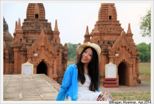 洗了澡,换掉中东式的装扮,穿上缀满铃铛的印度裙子,我喜欢这些细细碎碎的铃音,尤其是在夏日里随着微风响起。接上了小龟MM,果然是众人捧月的美女,再去新蒲甘与大家集合。下午去了北部平原和中央平原的一些大寺,印象最深刻的还是阿南达,廊壁上开有镂空的天窗,透过丝丝凉风,完美的十字对称结构,幽雅站立的佛像,印度式金色的麦穗塔顶,金红白三色造型轻盈,它的建造者Kyanzittha自1090年以来一直被模仿,从未被超越。达宾纽佛塔意为“无所不知”,共有5层,高达66米,是蒲甘平原天际线的顶点,内壁上有巴利文长颂石刻,可惜这几年已经不再允许攀登。 天色将晚,为了能到帕塔达的大平台上看日落,匆匆上了素威库吉佛塔(Shwegugyi)又匆匆下来,秀气的塔身,繁复灰泥的饰雕,有门厅,所以并不四方对称,前厅的穹顶在二楼形成一个小平台,穿过黑暗的石梯便可以到达,主塔是孟族风格的,蒲甘地区唯一一座按照印度孟加拉邦佛陀加雅寺的式样修建的佛塔,King Alaungsithu在1131年建立,预备明日再来过。 蒲甘平原上每一座或大或小的塔都有着因为建立的时间和缘由不同而不一样的故事,在其中某一座遇到当地一个老人,非常热情的用手电指出一处处的壁画给我讲解,我很不理解在同一面壁画里面竟然同时出现了湿婆还有释迦牟尼,塔的另一侧被重修过了,光秃秃的什么也没有。早上在许三多狭廊的心有余悸,到达帕塔达(Pyathada)的大平台顿时心旷神怡,一对穿着粉红色袈裟出来历练的小尼姑列队让我们照相,跪着刚想起身见到有人还没放下相机,于是又端正的坐好,如此反复了几次,然后咯咯咯的笑起来。见到了另外一波天朝来扛着长枪短炮的朋友,还遇见了一个很想加入我们的西人。这是同行人数最多的一天了,一路上被要求拍各种造型的集体照,一种证明存在感的,是为了证明我们遇见过麽?在路上行走,留或不留联系方式,不久之后都会消散在挥一挥手的再见中。 日落,如期而来,我也慢慢回到慵懒的状态中让自己放下那些和时间赛跑的计划,凭空眺远,时间在蒲甘被停止,冻结在某一段历史中,不曾前行。如果真的会有时空穿越,我想蒲甘也许就是一个看不见的空间入口,除了两条柏油主路,这里全都是沙土小道,甚至没有道,延伸在各做佛塔之间,马车是最基本的交通工具,我和小龟说可以乘一下矫情一番。 最后一抹落斜阳下去,天际由万紫千红转为暗蓝,南半球的星空虽然澄净幽远,但是北半球能见到的星座要密集甚多。抬头仰望的时候,我想此时小五应该在海上像一条鱼一样遨游,白天的海水可以是有形有质的,而夜潜周围既是无比的虚空,也是无比的满。 7个人一起去吃了一顿自助的缅餐,貌似除了我以外,大家都吃得很欢乐,我是那么喜欢东南亚那些泰、越、挝包括印度咖喱之内的各种美味,怎么到了缅甸就见了外,于是继续喝鲜榨芒果汁,大盆蔬菜上桌的时候除了生菜以外,竟然是秋葵和茄子,这些都是用来生吃的。 从清晨五点到晚上九点,这漫长的一天,包车50美金7个人分摊,我突然觉得,要不就休个间隔年在这做个志愿者也不错,最重要的是,这里让我心安。