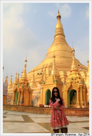 这一圈晃悠的时间超过了预期,在包子铺找到悠哉喝茶的西风桑,打车去瑞大光塔(Shwedagon Paya),傍晚,夕阳斜影,照得大金塔金灿灿的让心情也明亮起来。缅甸不是一个富裕的国家,但大金塔确实货真价实金子做的并镶有数千颗钻石、翡翠和宝石,始建于公元前6世纪,转换成华夏历应该是春秋时代,而此时的古希腊已经有人提出物质是由基本粒子组成的猜测。缅族是缅甸的主体民族,在历史上三次统一了缅甸,现在说的缅语属于汉藏语系中的藏缅分支。很难把身材较小穿着筒裙和隆基(longi)的缅人和矫战骁勇的蒙古人联系在一起,但缅族确实为蒙古人种而非马来海洋人种或者雅利安人种,同时缅族人带有大量的D-YAP基因,这一点也不同于中南半岛上除安达曼人外其他各族占据优势的C-130基因,这是一件很有趣的事情。中南半岛是一个国家毗邻密集的区域,而缅族在这其中独树一帜,即便在21世纪,缅甸和朝鲜一样属于世界上最神秘的国家,当然很大一部分和它们的政体有关。各种颜色的人貌似最初都是从非洲走出来,但是哪一个时间走出来,以及往哪个方向走,不同的批次构成了现在的各种肤色和人种,我有时候想,人生的际遇也正是如此,某一个分支点上的一次选择,尽管彼时微不足道,但是其后所有因果都来源于此。 黄昏的暮阳,是浓郁的。正好遇上那些送孩子来出家的仪式,长长的亲眷队伍,捧着修行期间的用度器皿,穿着白黄相间传统服饰的幼童脸上用塔纳卡(Thanakha)描出太阳咧开嘴笑着,少年则是一脸安静,家眷们撑着一溜金色的伞,伞骨很密,如同法轮,光洒落在伞面和塔身上,耀眼但又柔润,对于大金塔来说,这应该是一天中最美的时刻了吧。在缅甸,每个人都要出家,还俗时间自愿但最短为七天,与其说是一种体验不如说是一场修行,在入世还是出世这个问题上我突然想起来了汪峰和许巍的音乐,直接的说,是拯救还是逍遥,也许这就是小乘和大乘最大的区别,我甚至觉得,这也是道家和儒家最大的差异。 差一点撞在旁人身上,才发现原来也赶上了每天傍晚的扫地仪式,长列的女子志愿者在指挥下,各持两把扫帚以一种特定的动作以塔身为中心象一道线扫描过一样扫过地面,重复一次然后辐射到下一个扇形。闪过身,有个盛装的小女孩笑得很甜被父亲抱着,我举起相机的同时,她的家人友好的把她放下让大家拍照,再然后她的妹妹也过来了,描了口红小嘴撅着,挨着她们拍了许多照片,直到我收好了相机,她的家人笑盈盈地与我道别领着女孩们离开,也是将要出家修行的孩子吧,姐姐应该也不足6、7岁,在她的眼神中,我看到一种定,与妹妹的懵懂完全不同,她的笑容里面有宽袤的辽远,使我刹那闪过许多触感。 继续转着塔,有数人席地唱着佛教的歌,我便坐在他们身后,太阳更落了一些,映在塔上也更金黄了一点带着更多的暖意,梵音很悠长,似alpha波的音,这是一种静心安神的声音。尽管维持着表面的平静,内心深知这一段时间以来,我的情绪随时会崩溃,各种无意识的焦躁一直蠢蠢欲动,在这音乐中,让自己放慢呼吸,努力尝试着放松放空。催眠课上导师对我始终无法进入状态因放弃而耸肩,即便不能调节心理防御机制,起码要让自己可以舒缓下来。我一直相信行万里路和读万卷书都是必须的一程,尘世的历练容易在骨子里醒悟,比如这偶然遇上的梵乐。 人面狮身的佛像很萌,在每一处转角守护着一尊白玉的释迦牟尼,温厚恬然,那么的不经意却又那么的忍不住让人敬意。一共有八个祭坛分别由各个星座,方位,动物来表示,在缅甸是有星期八的,因为星期三被分成了上午与下午。世界上所有的事情逃不过物质或者精神,这似乎也是最近的IELTS大作文主题"physical & mental",在物质层面生活的人也许难以理解那些生活在灵魂层面的人,信仰这一个概念因为屡屡说而渐渐变得廉价,我以为每个人应该都是有所信仰的只是未必是某一宗教罢了,对于各种的不理解,只能在岁月中慢慢参悟。 绕完整的一圈,也费了不少时间,各间庙堂里都供人休息,就在佛像前或坐或卧,一切随性自然便好。送孩子入寺的仪式在结束的时候,所有家眷都会拍一张合影,他们和善的邀请我一起,于是我与她们一起并肩留在那一刻的瞬间里。大金塔里有免费的WIFI,最后一格手机电量的时候联系了西风桑等人预备离开,最终还是没来得及去看皇家湖上的卡拉威宫(Karaweik Palace),尽管距离大金寺并不远,有人说留点遗憾也是好的,那样会有动力下一次再来,真的是这样的吗?世界太大,要去的地方那么多,究竟能有多少机会会再一次踏上这片土地呢?到处标榜着的正能量,各种圈里的转发,时常变得生厌这些于事无补的矫情,我果然是更喜欢句句是实话的负能量。