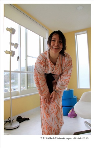 6.下田(Shimoda),白滨海岸和蜈蚣。 下田是南伊豆最重要的城市,很浓的热带渔城滋味,一路上过去海湾处停泊着私人游艇和各种渔船,初心是在网站上见到这家海贝壳酒店,三面开阔的望得见海的大窗,鹅黄色墙,奶白色的内饰,湖蓝色的茶几以及一个巨大的按摩浴缸,心动地当即决定额外在急行线上多驶一站在海边停留一晚。 把行李寄存在车站,先去了佩里之路,1835年美国佩里将军(Perry)的黑船在这里登陆,从此打开了日本的国门,这是一个具有日本历史意义的地方,但是除了热带海滨以外,它似乎并不怎么出名。 几乎没有游客,我们住在白滨海岸边的山上,大堂贴着户外泳池晚上也是个水吧,浓郁的南国海滩气氛,四层高的大酒店居然只有2家住客,那一家定的屋子是海蓝色调的家庭房内私人的户外风吕,而酒店公共大风吕归了我们私用。超爱这个酒店的主题设计,日西文化结合的几乎完美,东方的细腻和西方的开朗融成一股轻快的心情。 晚餐吃的是便当,又开了瓶青梅酒,下楼去泡汤,水烫的难以下,只能泼着水解解馋,坐在池边入了神。热气和酒意也许会帮助打通任督二脉,迷醉在氤氲气雾中畅酣淋漓,促然之间就打开了一个新天地。 睡了几天和式的榻榻米,突然回到柔软的床褥,有种受宠若惊的感觉,热水的确能舒张所有的疲倦,睡得特别安神,醒来时太阳已经散漫了整个房间,洗漱时躲在按摩浴缸里面不肯出来。南国的天有些热,拆下半幅带卸下带班的腰腹都是细微的汗。