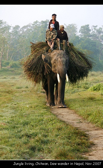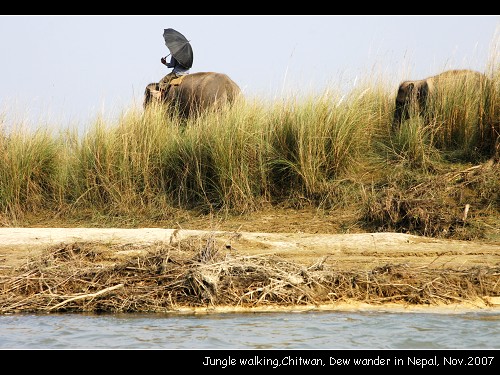 In Chitwan: Wake up at 6:00am,Breakfast,elephant back safari,elephant bath,Hot lunch,Canoeing +jungle walk,Hot dinner,Tharu dance; Wake up at 6:00am,Tea & coffee break,Bird watching,Breakfast,jungle safari by jeep.