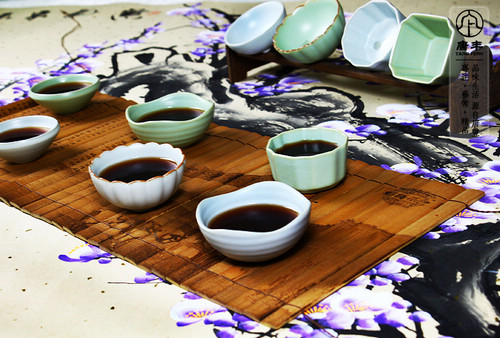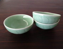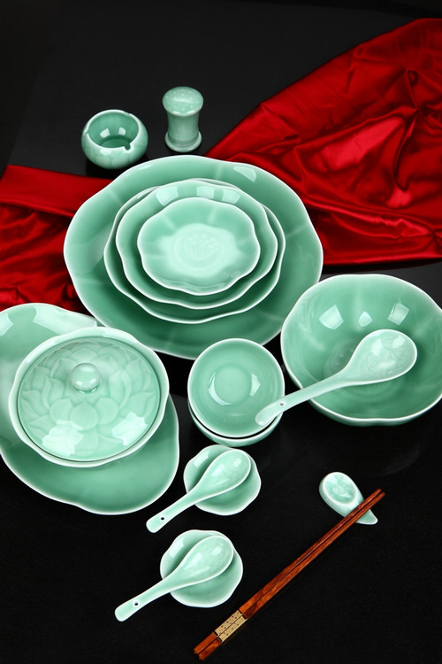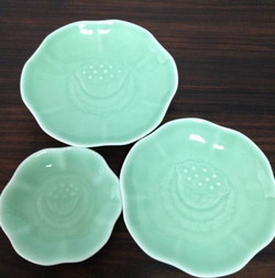甚爱这套秘色越窑梅子青的莲花餐具。
